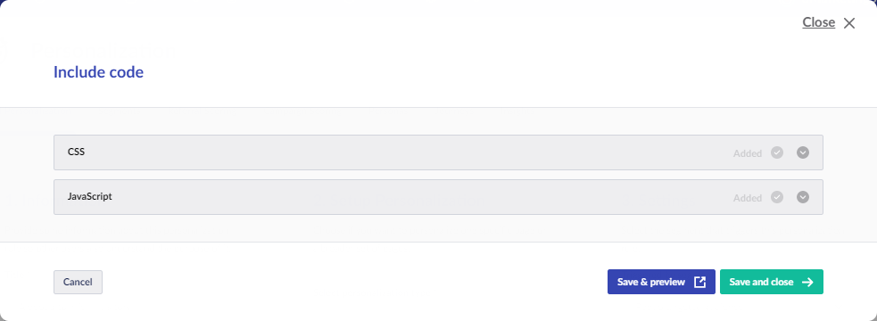 By now you would want to change the content of your popup. Go to Umbraco, click on Marketing, then Personalization and Applied Personalization. Click on the edit icon and scroll down to where you included the HTML and JavaScript code and again click on Edit. Here you can change the CSS or Javascript.